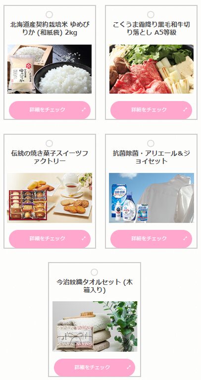 キャンペーン内容6種類から1つ3種類から1つ6種類から1つ5種類から1つgiftee Box SELECT4種類から1つ5種類から1つ5種類から1つ5種類から1つ