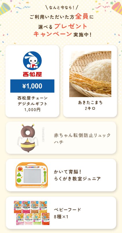 赤ちゃんグッズが貰えるキャンペーンは、以下の保険相談サービスです。